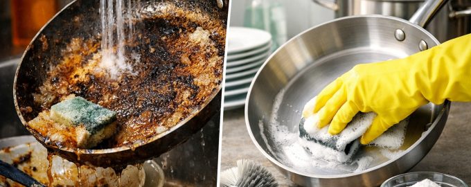 Чистата кухня е въпрос не само на естетика, но и на хигиена. С течение на времето тиганите, тавите за печене и тенджерите и тиганите развиват гъста кафява патинакоято не може да бъде отстранена с обикновен препарат за миене на съдове. Този застояла мазнина и Замърсяване се причиняват от постоянното нагряване на остатъците от масло, които се превръщат в здрав полимерен филм. Не е необходимо да купувате скъпи химикали, за да възстановите първоначалния блясък на съдовете си, тъй като ефективните решения често са на една ръка разстояние.