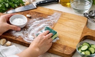 Горчица на прах. Отличен естествен абразив и Обезмаслител. Сухата горчица моментално абсорбира маслото и премахва лепкавия слой, без да оставя микродраскотини по стъклото, където обикновено се натрупват бактерии.