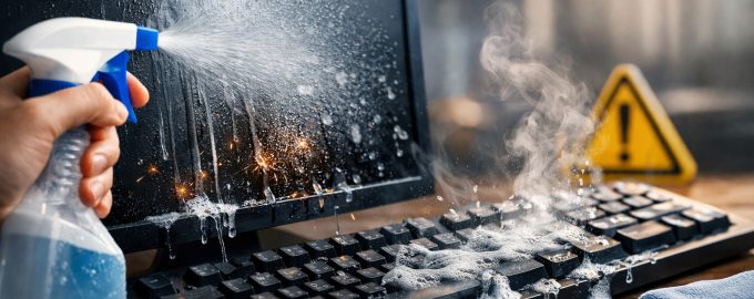 Сигурно сте го виждали много пъти в реклами или видеоклипове за почистване, където се пръска голямо количество почистващ препарат директно върху дадена повърхност. В действителност този метод е най-бързият начин да изпратите скъпа джаджа или домакински уреди до сервизния център.