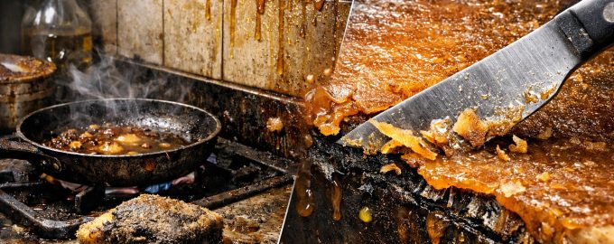 Постоянните температурни колебания в кухнята действат като катализатор. Когато готвите, мазнината омеква и прониква по-дълбоко в повърхностите, а по време на периодите на почивка окончателно се втвърдява. Този цикъл се повтаря многократно, което прави Адхезия (адхезия) на мазнините към повърхността на максимума.